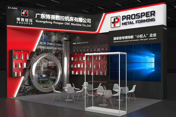 Surface Roughness Defects and Preventive Measures of Spun Workpieces Surface roughness defects of spinning workpieces are common problems in the spinning forming process, mainly manifested as orange peel, indentation, vibration marks, knife marks, scales, etc. These defects not only affect the appearance, but also may reduce the fatigue strength, sealing performance, and assembly accuracy of the parts. The following are the main causes of defects and corresponding preventive measures: Common Defects and Causes: ①Orange peel: The material grains are coarse or unevenly deformed, especially in multi pass spinning, the inner surface cannot fit the mold due to the large gap between the spinning roller and the mandrel, resulting in rough product surface. ②Indentation: There are foreign objects, wear, or poor lubrication on the surface of the spinning roller or mandrel, causing local indentation of the product. High frequency vibration marks: self-excited vibration caused by insufficient rigidity of machine tools, unstable clamping of rollers or workpieces, and unreasonable cutting parameters. ③ Knife marks/scales: Improper cutting speed, small tool rake angle, and excessive cutting thickness can cause chip crushing, accumulation, and the formation of scale like defects. ④Scratches/surface scoring: Surface scratches on the product caused by poor chip removal, unclean cutting fluid, or chip buildup and detachment. Preventive Measures: ①Optimize process parameters: control the deformation of the spinning pass (control the thinning rate to be less than 30%) to avoid excessive or uneven deformation; Reasonably set the gap between the roller and the mandrel (generally 0.1 mm smaller than the wall thickness). ②Equipment and chucks: Improve the rigidity of the spinning machine, regularly maintain the guide rails and bearings, ensure that the workpiece is firmly clamped and reduce vibration sources. ③Tool and lubrication: choose high finish, wear resistance roller. Keep the tool clean and use efficient lubricating coolant to avoid the formation of chip deposits. The spinning roller can be coated to avoid the material adhesion to the spinning roller. ④Material selection: Choose materials with small grain size and uniform structure. Annealing the blank to improve its plastic deformation ability. ⑤Environment and operation: Keep the processing environment clean to prevent foreign objects from entering the mold. Operators should regularly check the surface condition of the mold and replace worn parts in a timely manner. Surface roughness defects in spinning are often the result of multiple coupled factors, and we should be systematically investigated from the four dimensions of "equipment -process -material -operation". At the Metal Forming Exhibition, PROSPER presented a comprehensive manufacturing solution for metal parts based on resource conservation and efficient production.